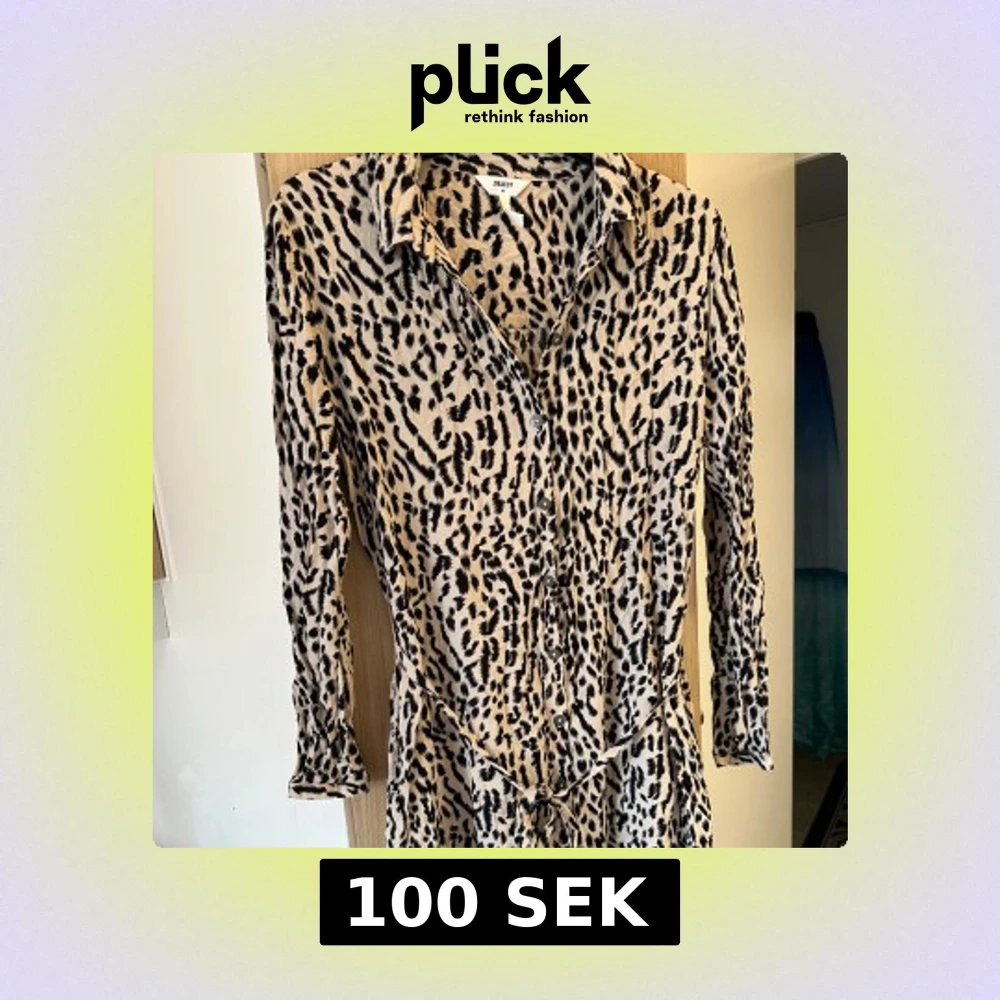 Säljer en beige och svart leopardmönstrad klänning från Object i storlek 42. Klänningen har lång ärm, knappar framtill och ett knytband i midjan för extra snygg passform. Perfekt för dig som vill sticka ut med ett djuriskt mönster.