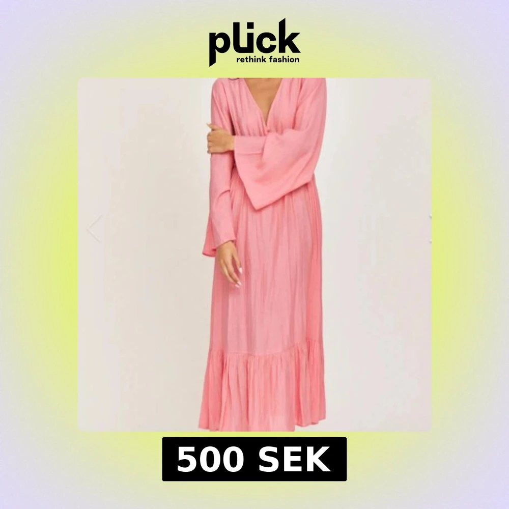 Superfin rosa långklänning med v-ringning och vida ärmar. Klänningen har knappar framtill, volang nertill och öppen rygg med knytband. Tillverkad i ett lätt, krinklat tyg som känns luftigt och perfekt för varma dagar. Använd 1 gång. Nypris 699kr ‼️Lånade bilder