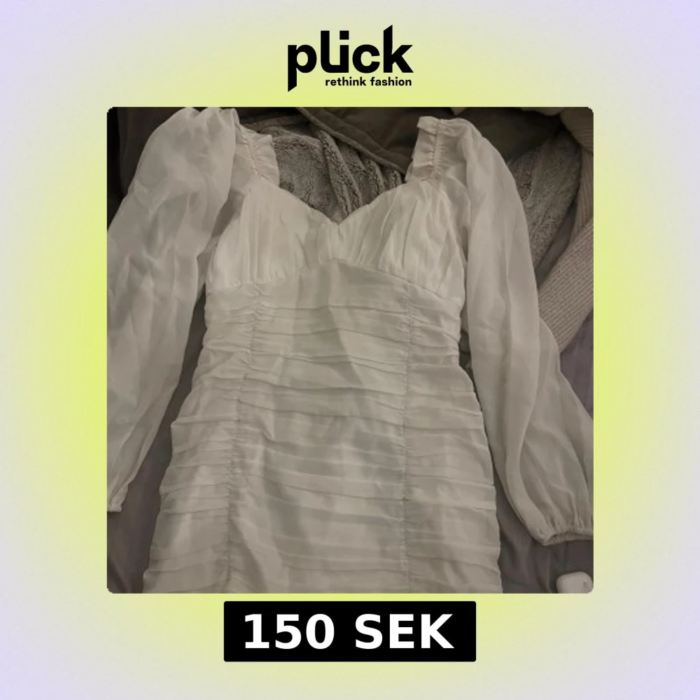 Vit klänning från NLY Trend med långa ärmar och v-ringad design. Jättefin passform med rynkade detaljer och dragkedja i ryggen. Endast använd en gång då jag slutade 9an.