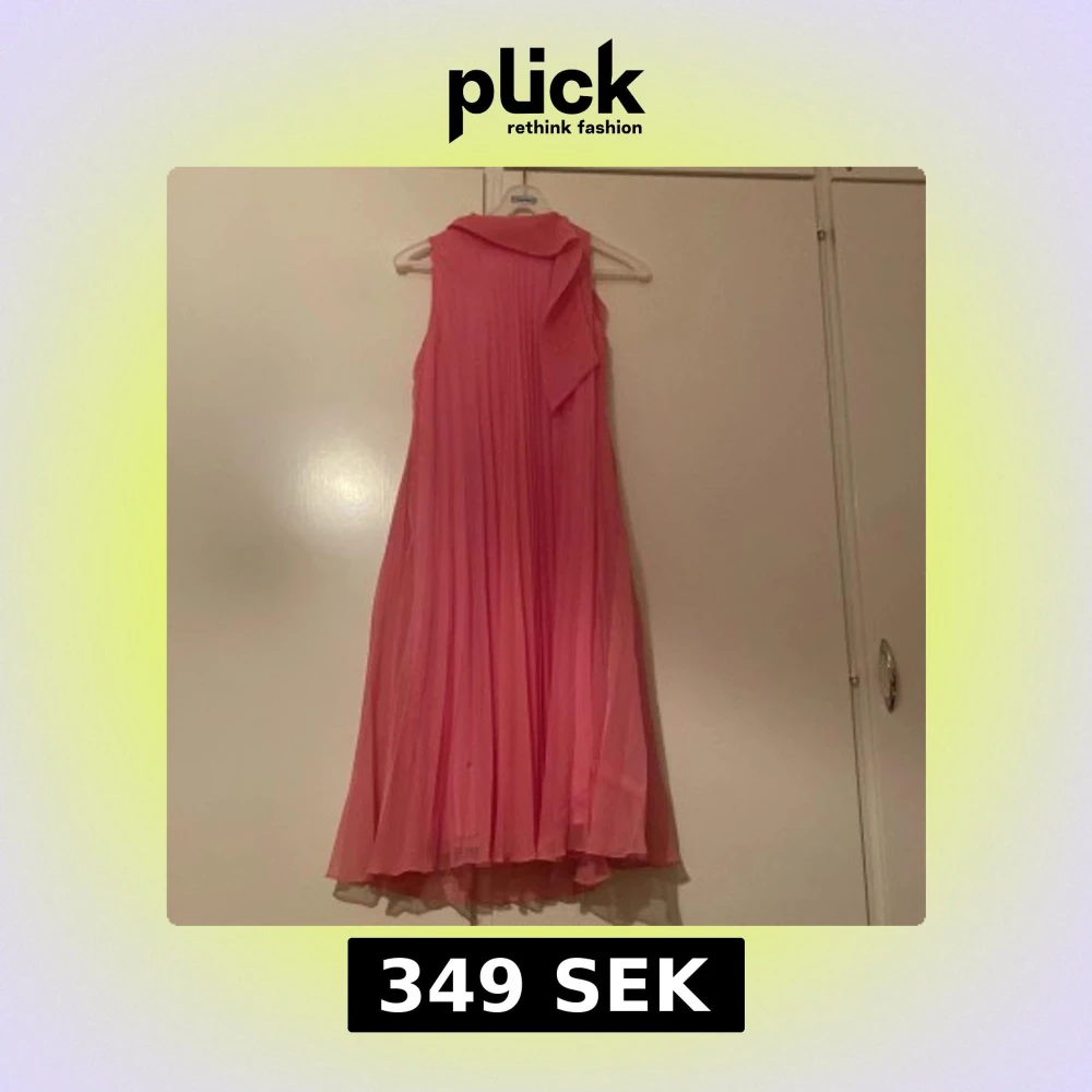 Säljer en rosa långklänning med plisserat tyg och scarf-liknande detalj vid halsen. Klänningen är ärmlös och har en luftig, elegant siluett som ger ett flowy intryck. Perfekt för sommarens tillfällen!