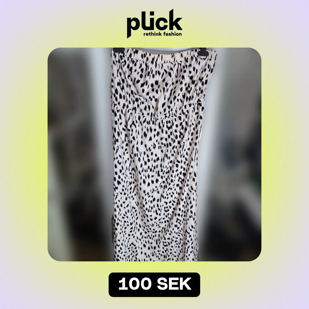 Långklänning i ljusrosa och svart med ett coolt mönster. Storlek 44/XL. Klänningen har en elastisk söm både över och under bysten för en bekväm passform som inte glider ner trots axelbandslös. Tror jag köpte den på bohoo. Inga defekter.
