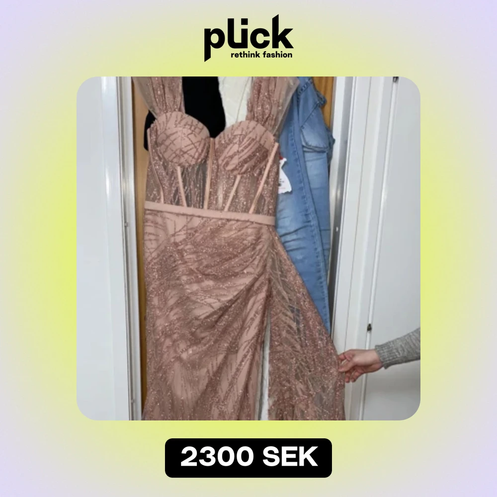 Säljer en champagne rosa klänning i storlek 44. Super fin på kroppen o går att ha på axlarna, off shoulders och mittimellan. Använt en gång (Andra bilden är till som exempel på hur det ser ut, av modellen) Pris kan diskuteras