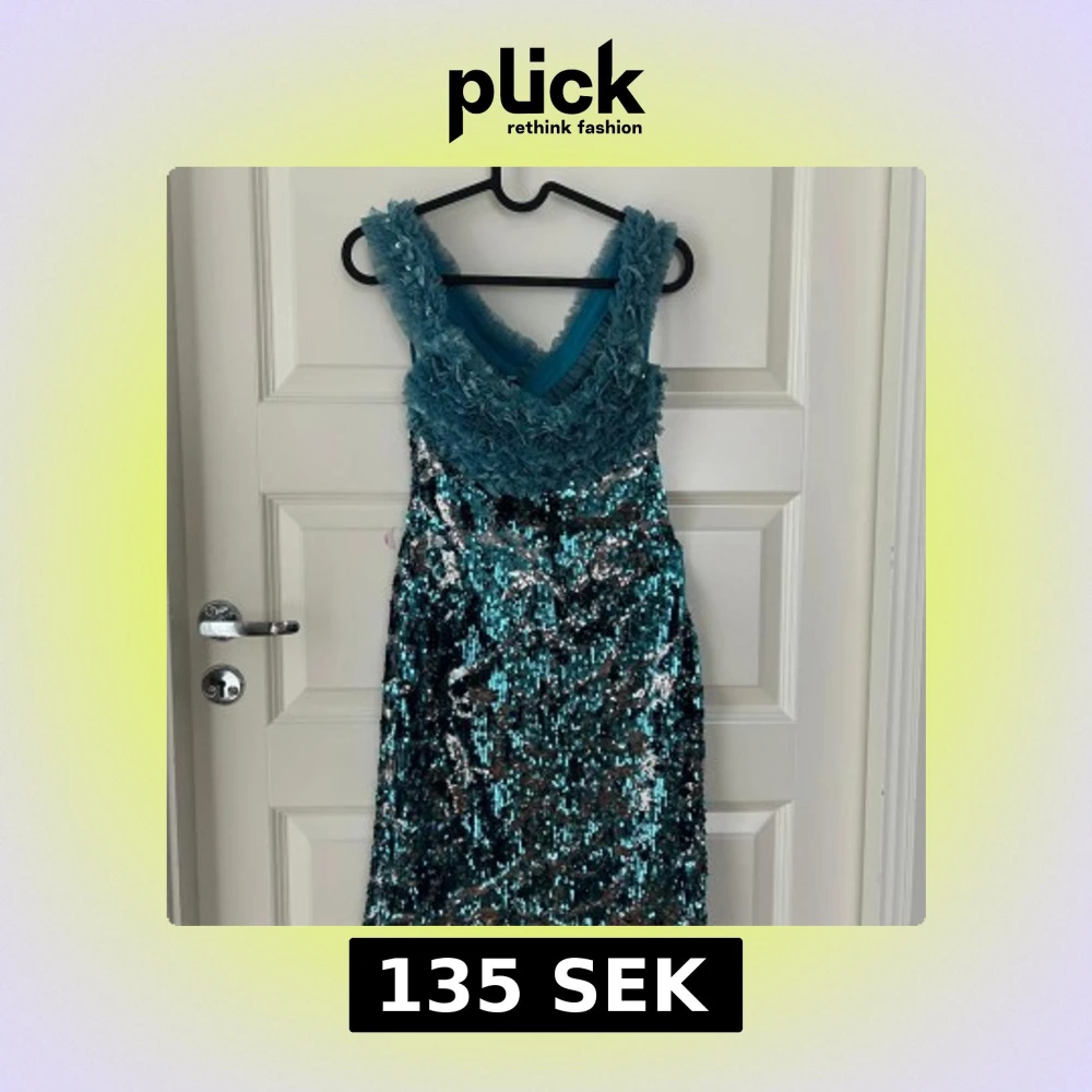 Snygg långklänning från Invito i glittrande blått och silver med paljetter över hela klänningen. Överdelen har volangiga axelband och omlott-detalj. Tillverkad i polyester, nylon och lycra. Perfekt för dig som vill sticka ut med en unik look!