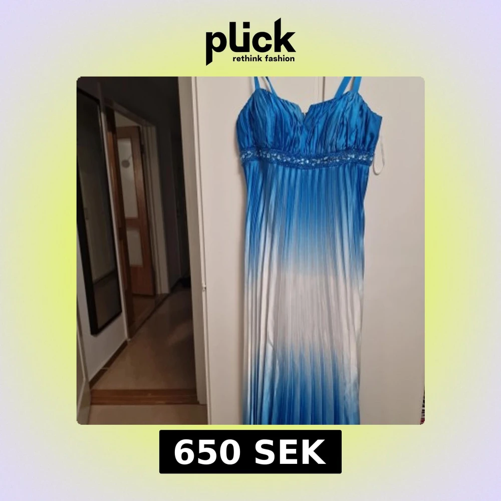 Elegant långklänning med ombre-effekt i blått och vitt. Klänningen har smala axelband och vackra detaljer med paljetter under bysten. Perfekt för en speciell kväll.