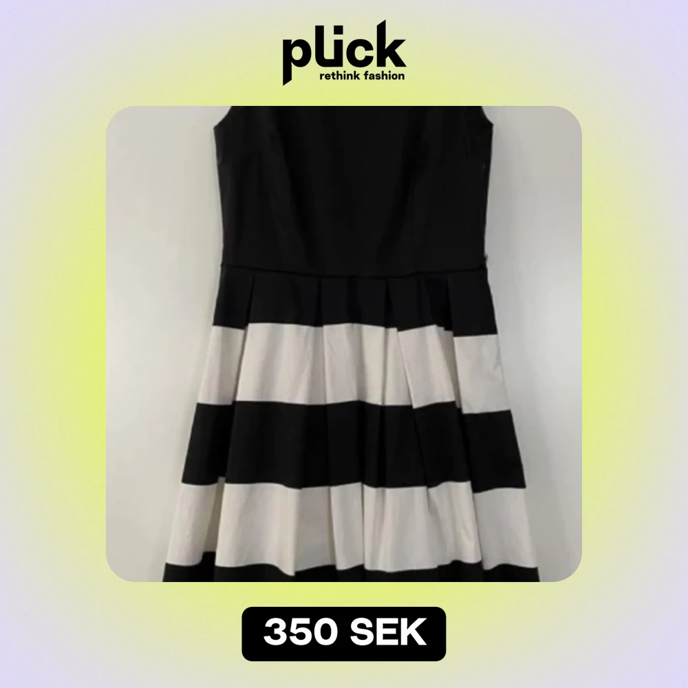 Svartvitt klänning från Lindex, Holly & Whyte i storlek 46. Avtagbart bälte i tyg med rosett. Öppen upptill på ryggen. Endast använd en gång och därför i väldigt fint skick. Säljes på plats eller skickas, men då står köparen för frakten.