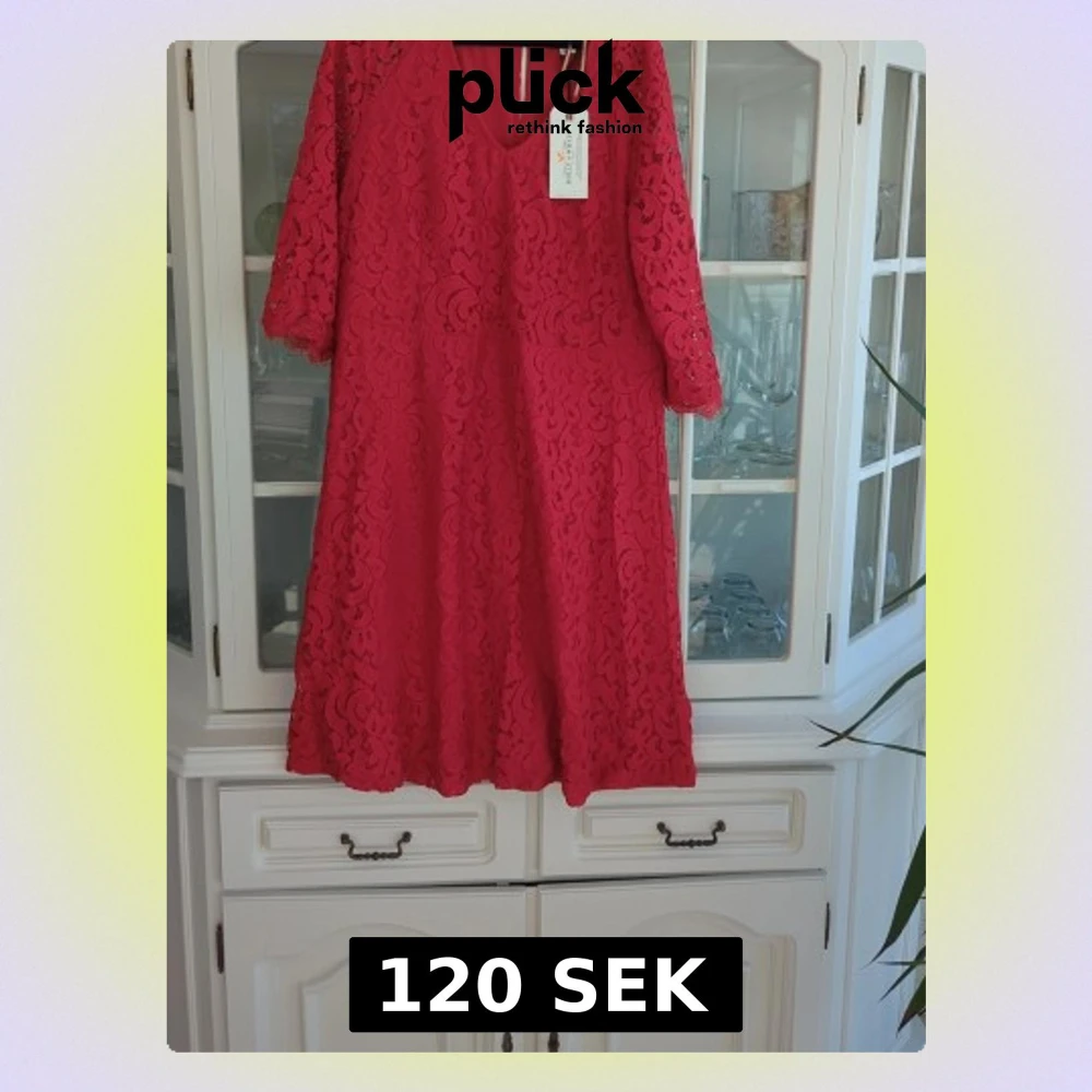 Snygg röd klänning med v-ringning och trekvartsärm. Klänningen är täckt av ett vackert spetsmönster och har en lös passform. Perfekt för dig som vill sticka ut med en färgstark look. Märke: Holly&Whyte