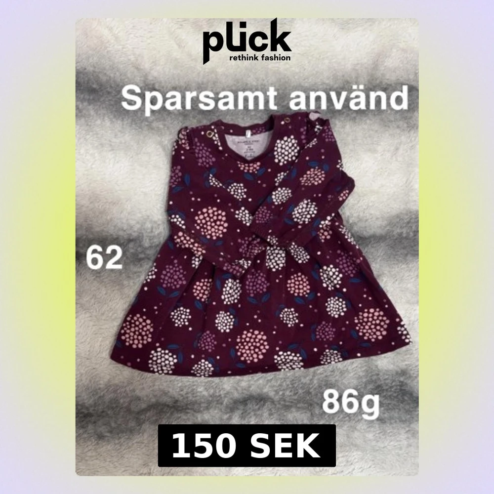 Superfin lila klänning från Polarn O. Pyret med blommigt mönster. Klänningen har lång ärm och rund halsringning. Perfekt för dig som gillar färg och mönster!🌸 Sparsamt använd. Storlek 62
