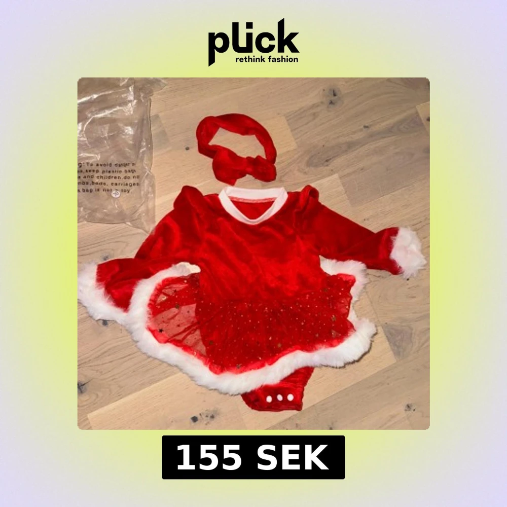 Supersöt röd klänning med långa ärmar, vit fuskpäls vid ärmslut och kjolkant samt glittrig tyllkjol med stjärnor. Medföljer matchande röd rosett att ha i håret. Perfekt för julens alla tillfällen!