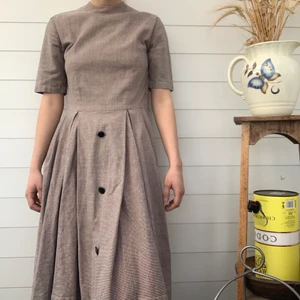 Snygg vintage klänning med cottagecore feeling. Super härligt mönster och så snyggt med knapparna på kjolen. Dragkedja finns både bak och på sidan som bild 3 visar. Materialet är lite tjockare men ser lite ut som linne. Står strl 40 men är som en XS🤎 Märke: Parant modell och gissar på svensktillverkade