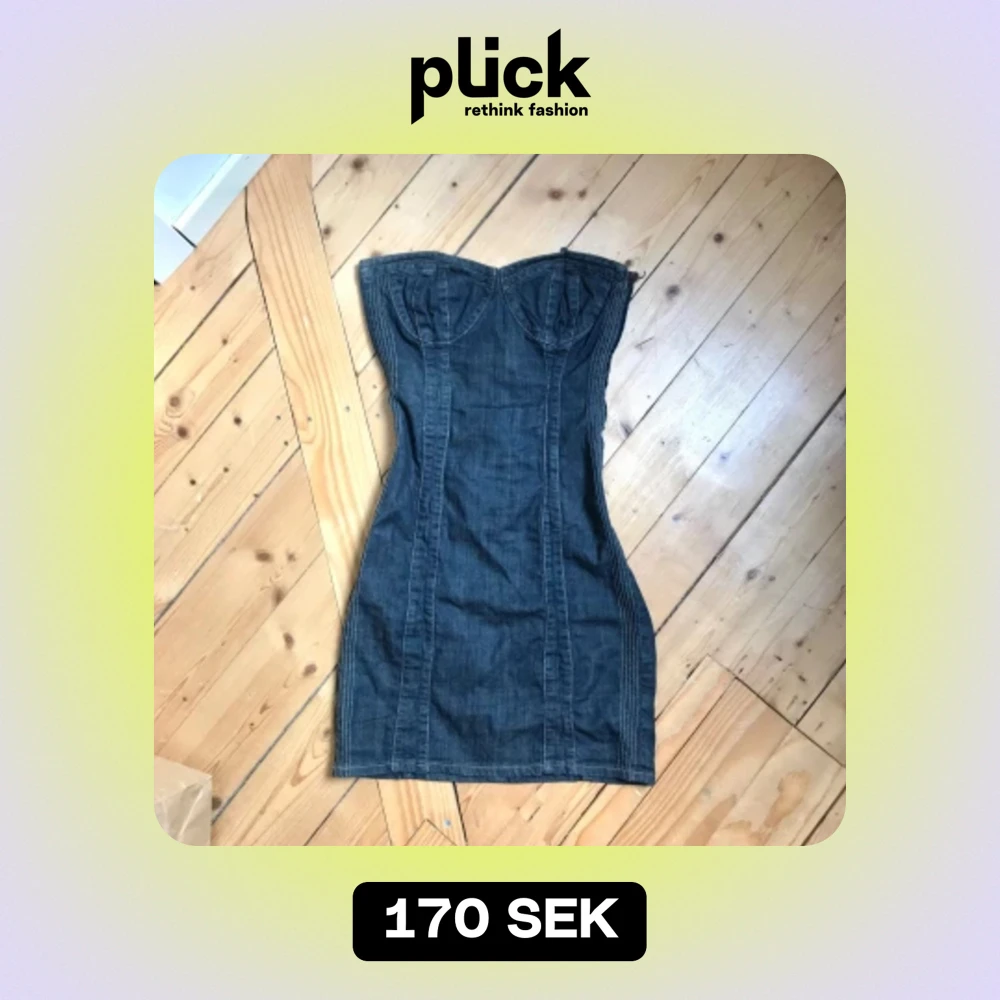 Super snygg jeansklänning med snörning på ryggen och dragledja på sidan. Står storlek 38 men skulle säga att den är 36. Otroligt ball.
