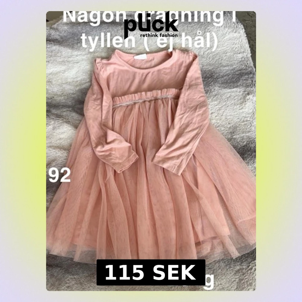 Supersöt rosa klänning med långärmad överdel och fluffig kjol i tyll. Perfekt för dig som gillar volym och en romantisk look. Kjolen har flera lager tyll som ger extra snurr och en söt detalj i midjan.🌸Fint använt skick. Någon dragning finns. Storlek 92