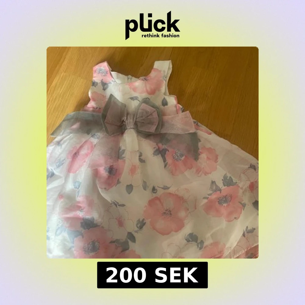 Supersöt blommig klänning från Little Aimy i vitt med stora rosa och grå blommor. Storlek 98-104