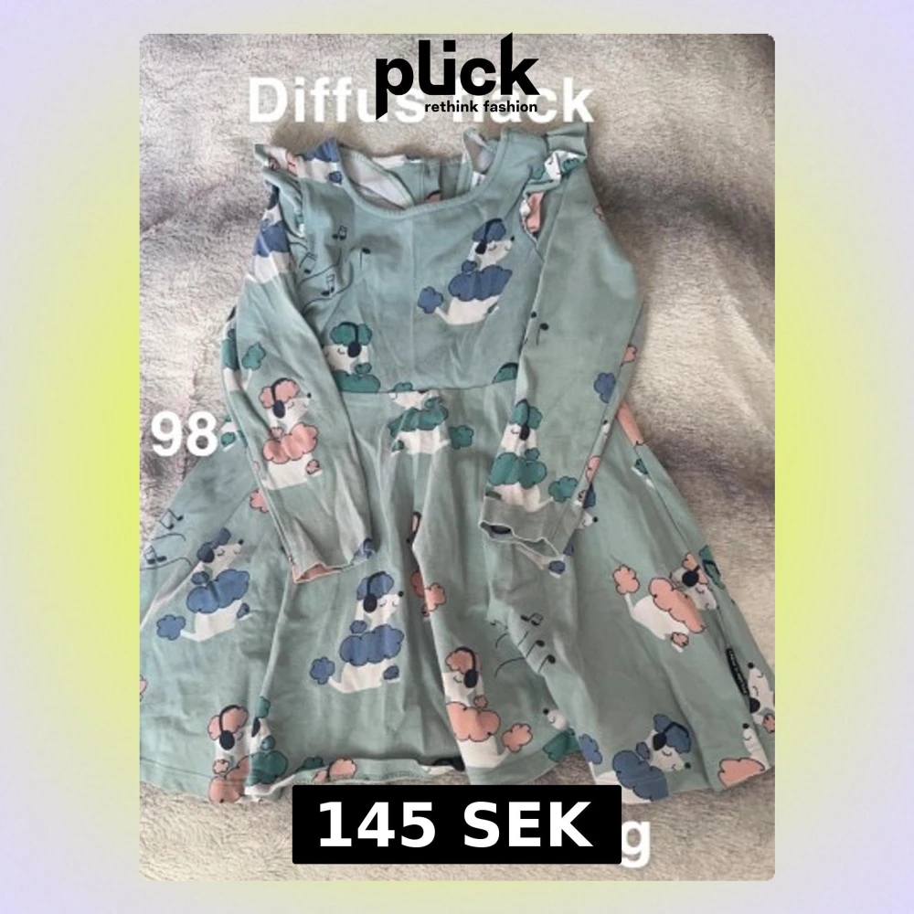 Supersöt klänning med lång ärm och gulligt pudeltryck i blått och rosa. Klänningen har rund hals, perfekt för dig som gillar lekfulla mönster och bekväma plagg.🌸 Diffus fläck. Storlek 98