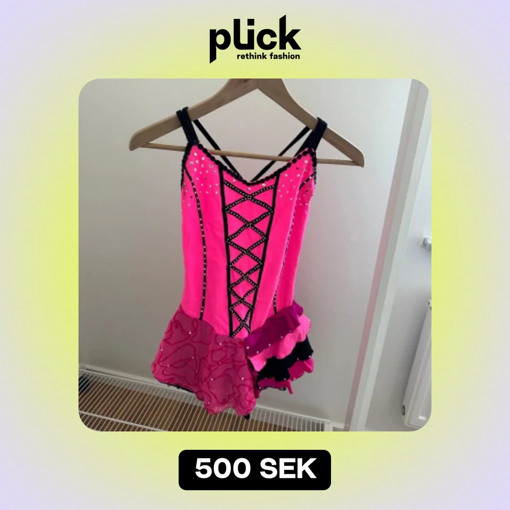 Konståkningsklänning i fint skick!Användes av mig i åldern ca 9-10😁 Obs. några enstaka stenar har tyvärr trillat av.