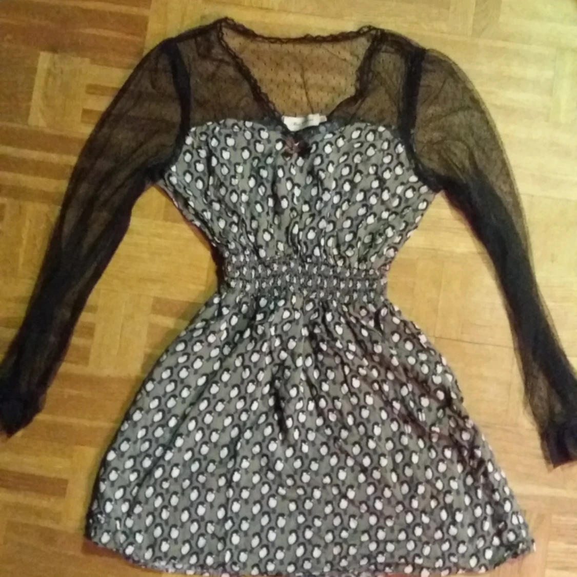 Aldrig använd klänning med fågel-tryck. 50kr.