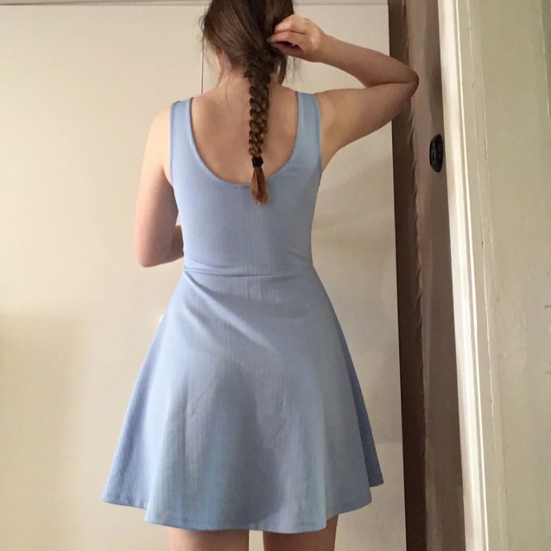 Superfin ljusblå klänning i fint skick. Den är ganska tight upptill på mig, och jag är en 38-40. Lätt mönstrad. Jag möts helst upp i Örebro (eller Katrineholm där jag är med jämna mellanrum) eller skickar men då står köparen för frakt.
