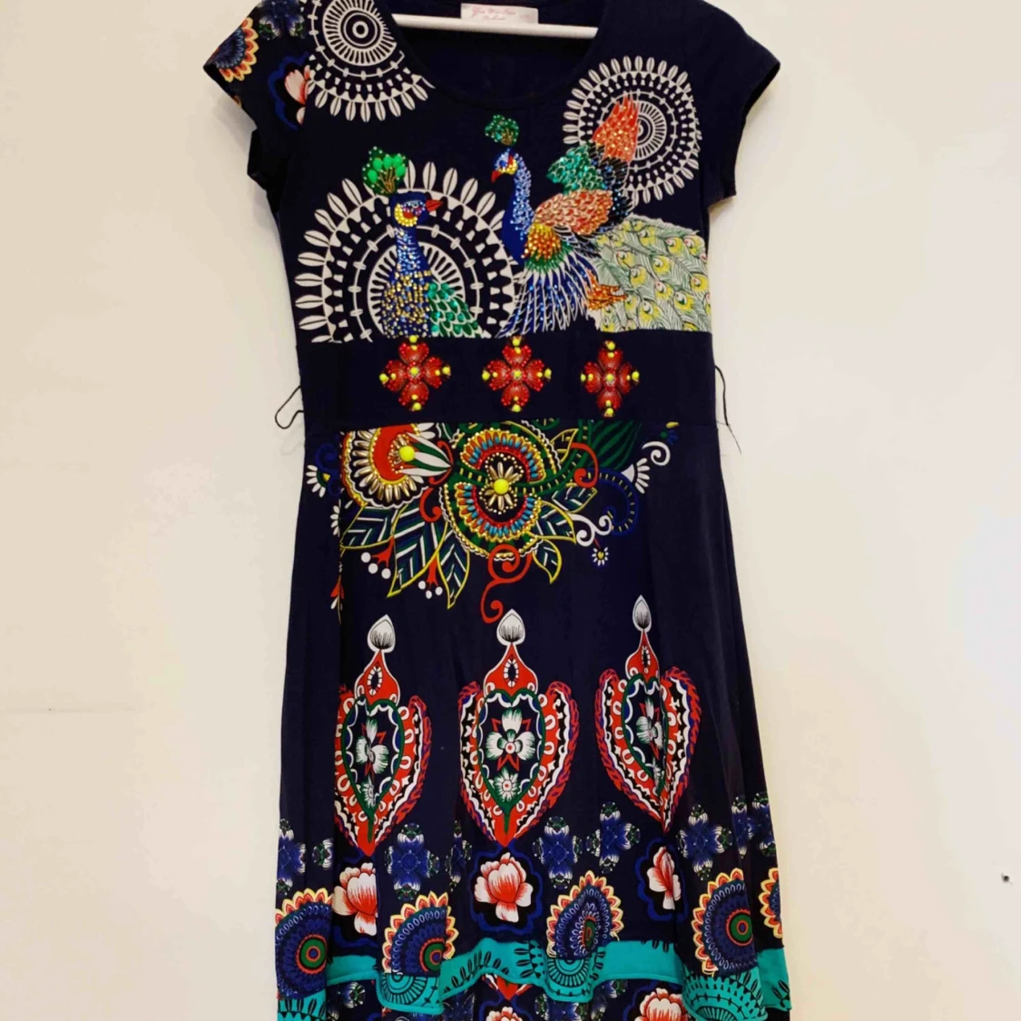 Snygg blå klänning med mycket stenar. Använd ett par gånger men kommer inte längre till användning. Frakt tillkommer
