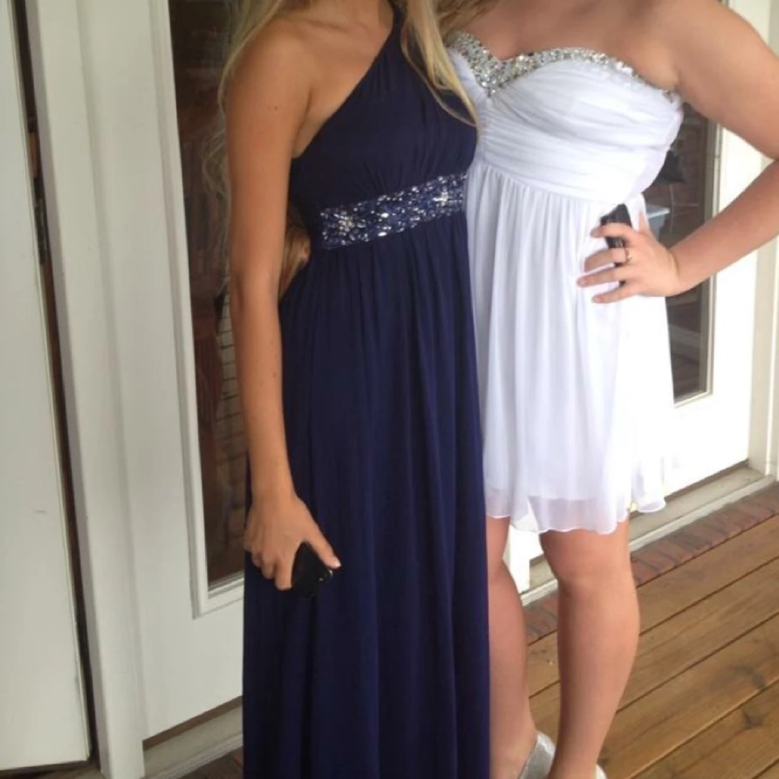 Mörkblå bal/ bröllops- klänning med 1 arm. Väldigt väldigt fin, fått många komplimanger! Använd vid 2 tillställningar. Nypris ca 1500kr. Har ej kvitto kvar. Kan mötas upp & har swish. Vill du ha fler bilder, hör av dig!