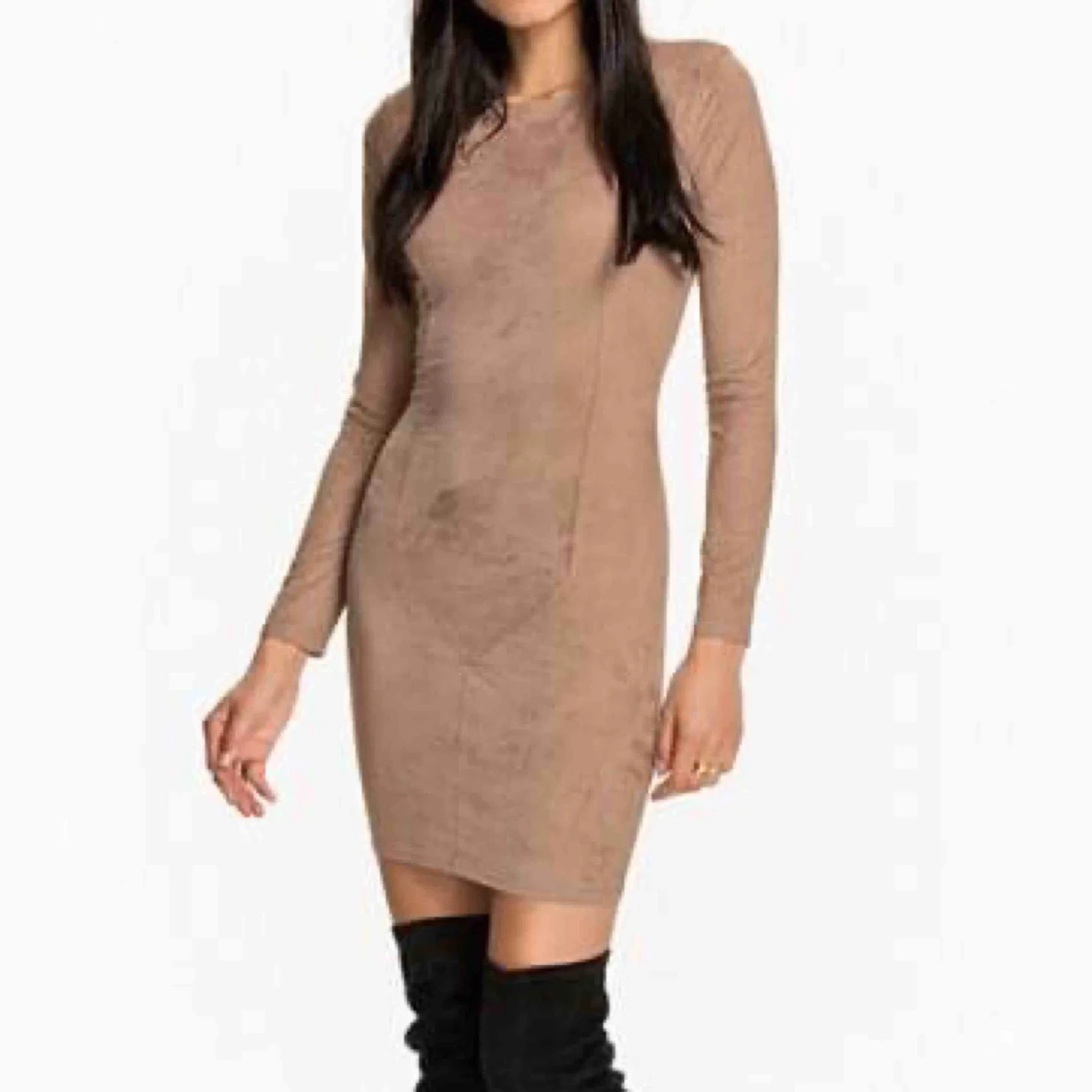 Ny klänning i mocka liknande material. Storlek M men är stretchig, passar xs-s då den är liten i strl. Passar ev en mindre M Fri frakt