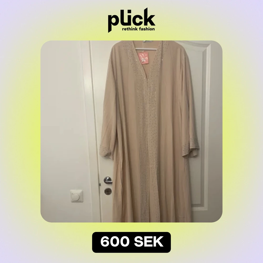 Helt ny och oanvänd abaya köpt utomlands, ljus rosa beige färg med silver kristall detaljer.