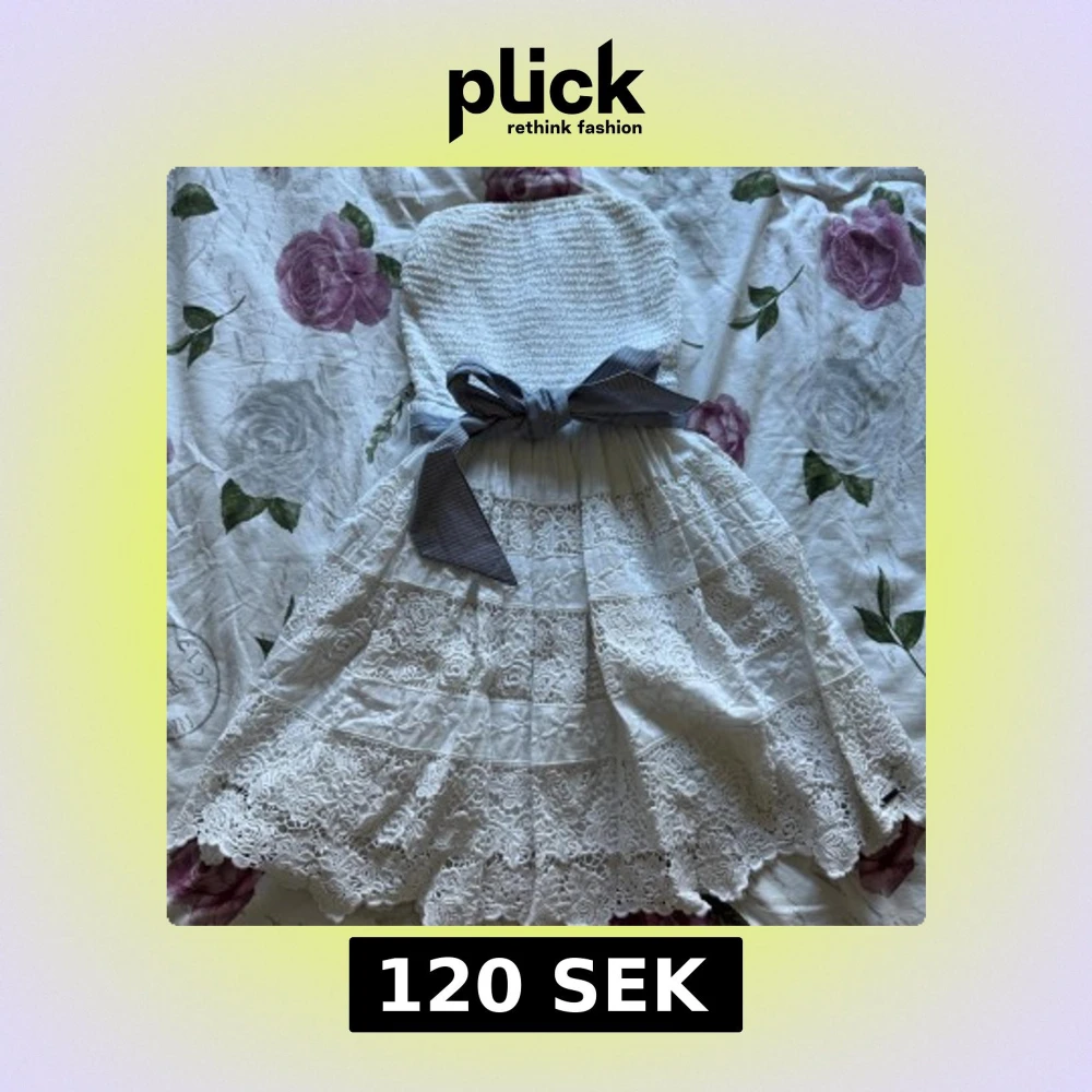 Vit spetsklänning med rosett