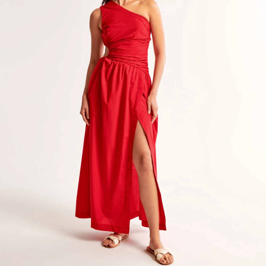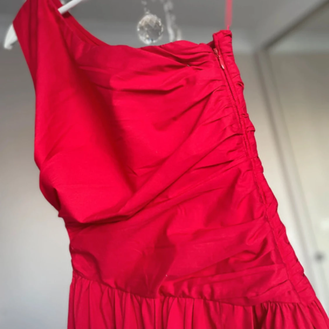 Ny röd klänning med cutout på ena sidan, slits och one shoulder helt ny med tags kvar , från Abercrombie & Fitch , superfin till finare tillställningar bal etc ☺️