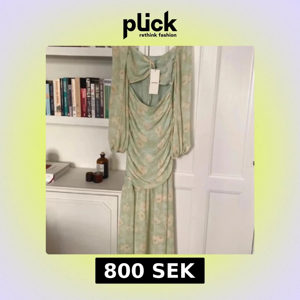 Säljer en dreamy ljusgrön långklänning från Adoore i modellen Porto med blommigt mönster i beige och vitt. Klänningen har puffiga långärmar, snygg snörning och öppen rygg med draperade detaljer framtill. Perfekt för sommarens alla tillfällen!