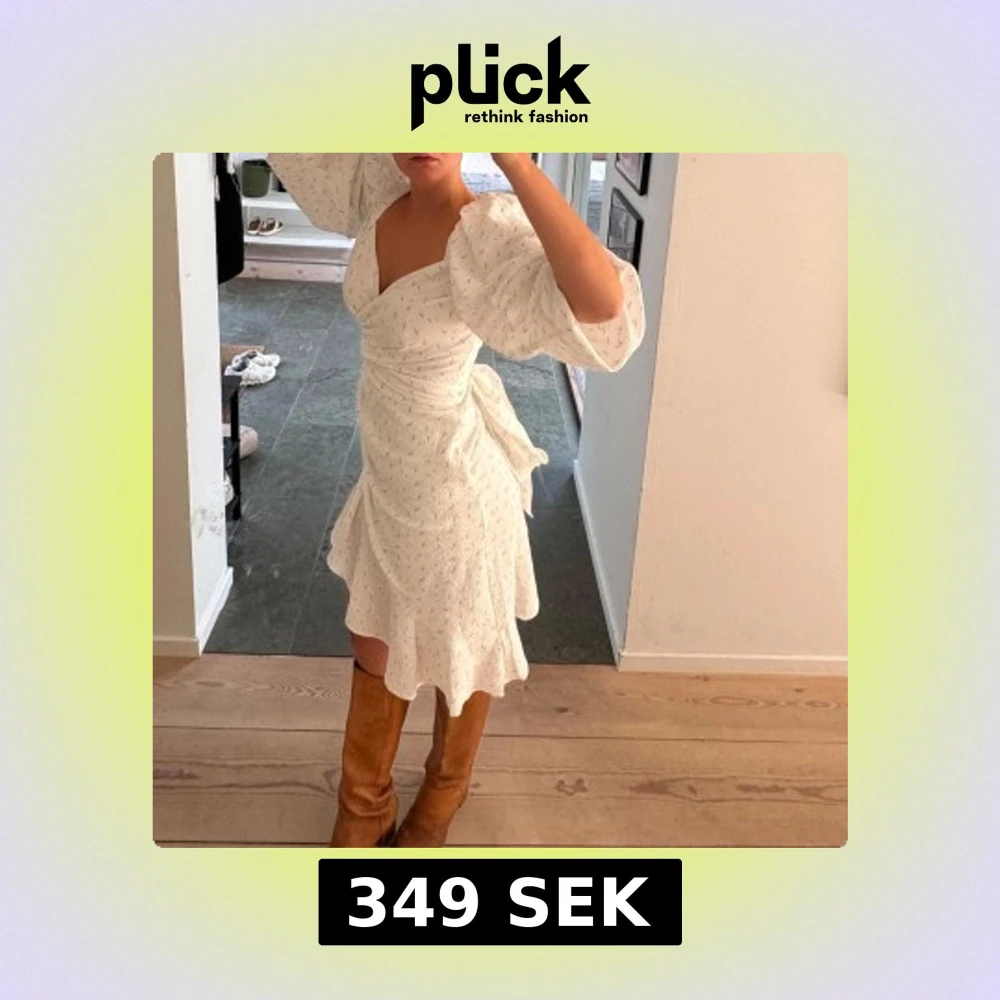 Säljer min superfina vit omlottklänning med puffiga trekvartsärmar och volangdetaljer.💫Man knyter i midjan så man får väldigt fin figur! Använt endast en gång