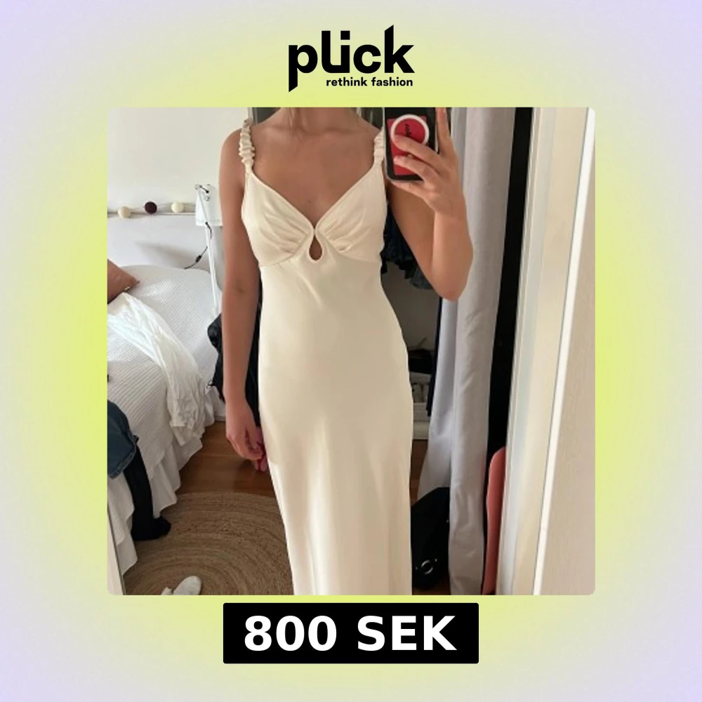 Balklänning från adoore i storlek 34. Jag är 170 för referens. Superfin i skick!Säljer en elegant vit långklänning med djup v-ringning och liten cut-out framtill. Klänningen har breda axelband med volangdetaljer och öppen rygg. Perfekt för sommarens tillfällen! Fläckar kan förekomma!