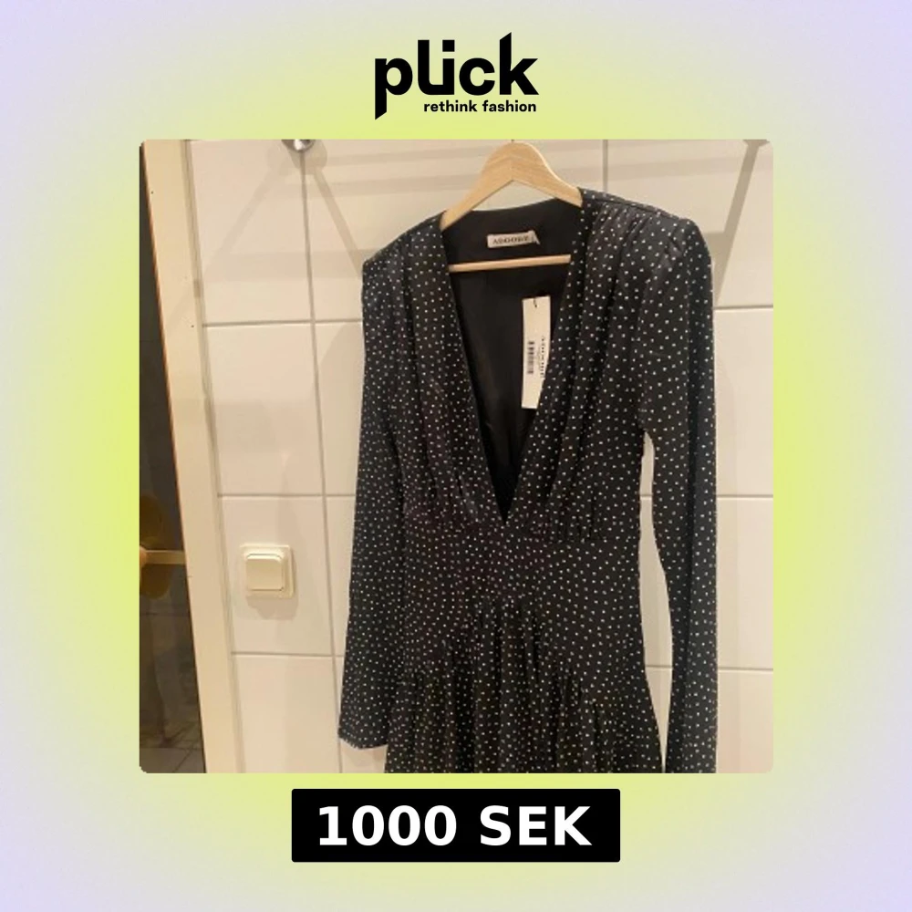 Säljer en elegant svart klänning med vita prickar från Adoore. Klänningen har en v-ringad design och långa ärmar, perfekt för en stilren look. Den är kort och passar bra till olika tillfällen. 🖤Tror inte den säljs längre, nypris ca 1200 har jag för mig, och har aldrig anvönt bara provat!