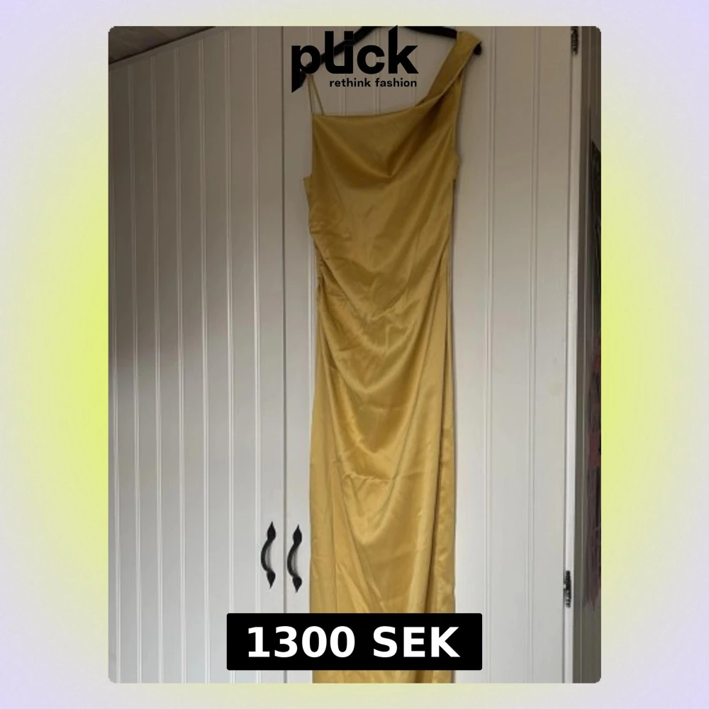 Säljer en elegant gul långklänning i glansigt satinmaterial från Adoore. Klänningen har en enkel, rak siluett och är ärmlös med smala axelband. Perfekt för bal!💕
