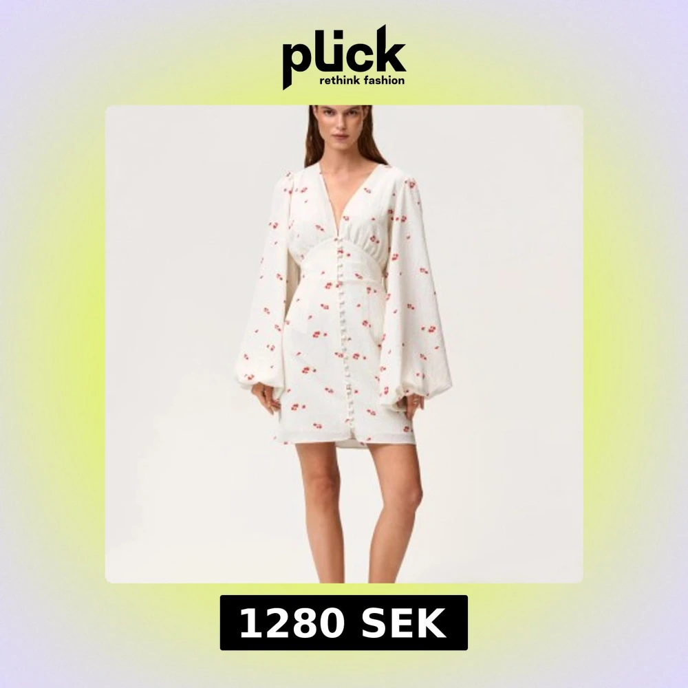 Superfin vit kortklänning med små röda blommor, v-ringad och med markerad midja. Klänningen har långa, vida ärmar och knappar framtill. Perfekt för sommarens alla tillfällen. Klänningen är från Adoore och har endast testats en gång. Lappar sitter kvar🩷🩷