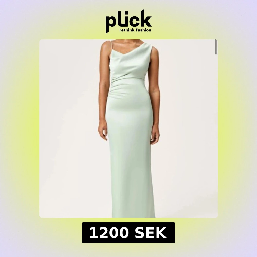 Säljer en elegant ljusgrön långklänning med oneshoulder och smal passform. Klänningen har en draperad överdel och smala axelband, vilket ger en stilren och modern look. Perfekt för bal/bröllop/sommarfesten. Har använts enbart en gång.