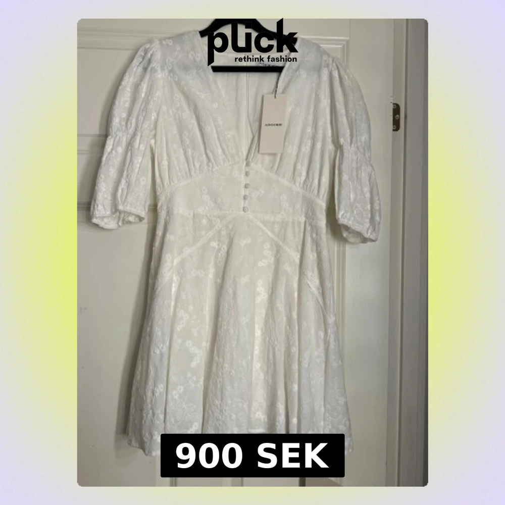 Klänningen är enbart testad och alla lappar finns kvar. St 40, Superfin vit kort klänning från Adoore med v-ringning, puffärmar och broderade blommor. (Pris kan diskuteras alt byte till samma klänningen i en st större)