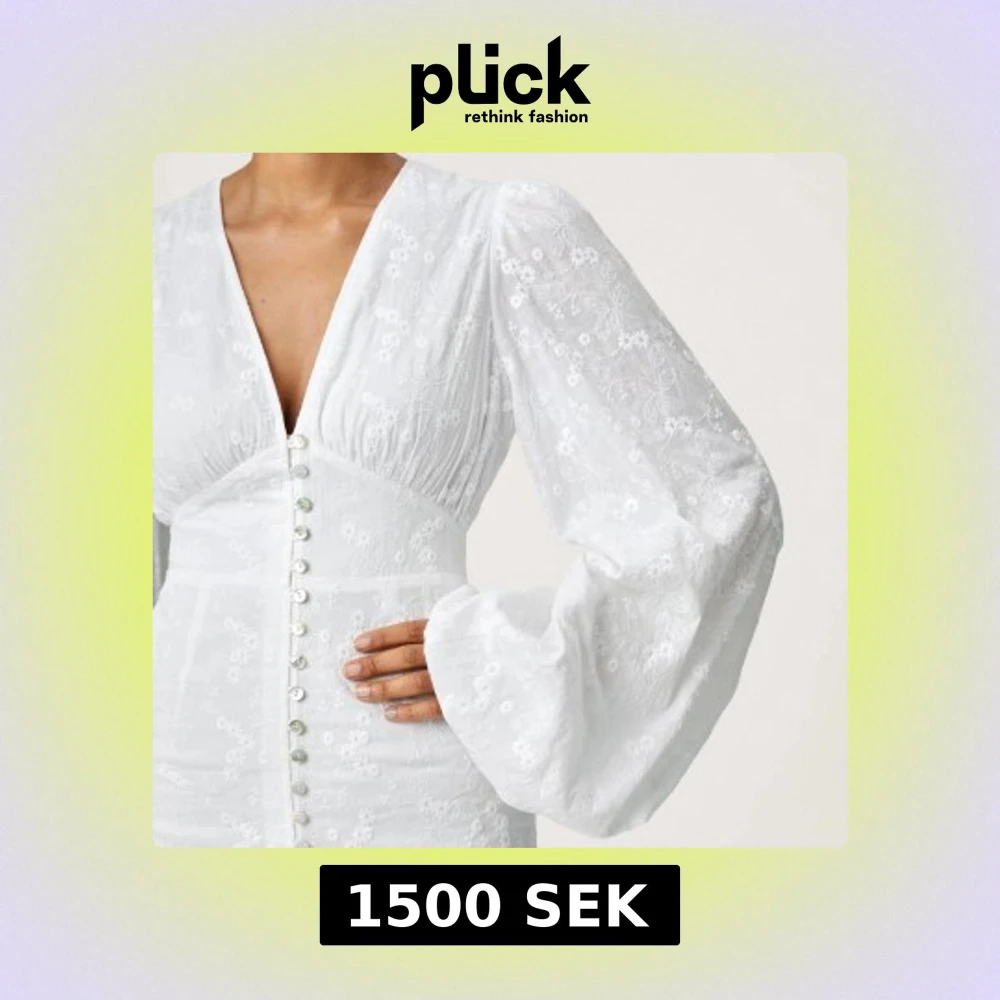Säljer min postiano klänning från ADOORE, endast använd en gång på studentmottagningz Superfin vit långklänning med broderade blommor, djup v-ringning och knappar framtill. Klänningen har dramatiska puffärmar och markerad midja för en snygg siluett. Perfekt för dig som vill sticka ut med en romantisk och trendig look.