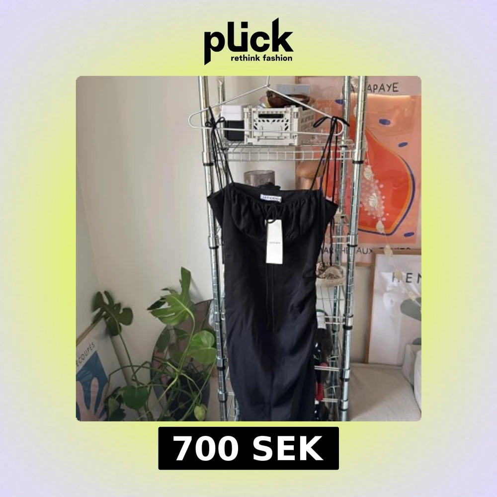 Elegant svart klänning från Adoore med smala axelband och en knytning framtill. Helt oanvänd.