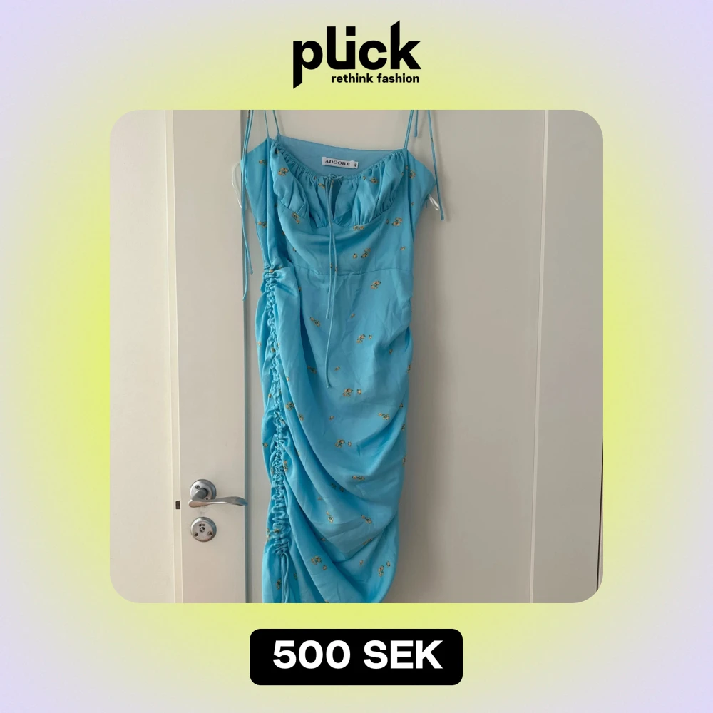 Säljer en superfin ljusblå klänning från ADOORE med små blommor. Den har en snygg drapering på sidan och smala axelband. Perfekt för sommarens fester eller en mysig vårdag. Klänningen är i mycket bra skick och har en härlig passform.