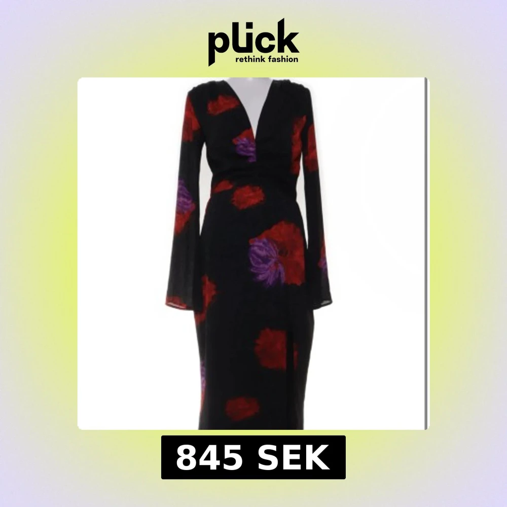 Supersnygg svart långklänning från Adoore med stora röda och lila blommor, v-ringning och lång ärm. Klänningen har en slits framtill och markerad midja som ger en riktigt elegant siluett. Perfekt för dig som vill sticka ut med stil.