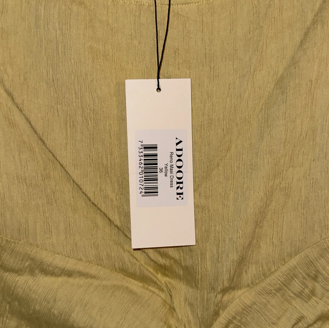 Reno maxi dress strl 36, gul. Fiiiinaste klänningen men tyvärr lite för tight på mig som annars bär 38 i adoores klänningar. Går att ha både på axlarna men även off- shoulder. Detaljerna vid midjan skapar en otroligt vacker form!💛💛💛 slutsåld!
