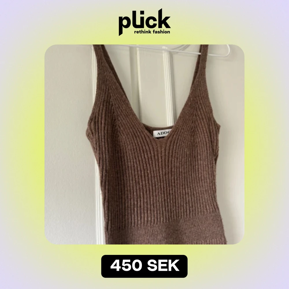 Brun stickad klänning från Adoore, köpt på deras hemsida. Använd fåtal gånger stl 38. Stretchig i materialet och sitter väldigt fint