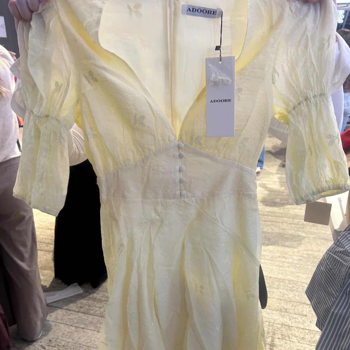 Ny klänning från adore med prislapp kvar, bilden visar samma klänning fast i vit (den jag säljer är gul) men den gula finns inte kvar på hemsidan längre