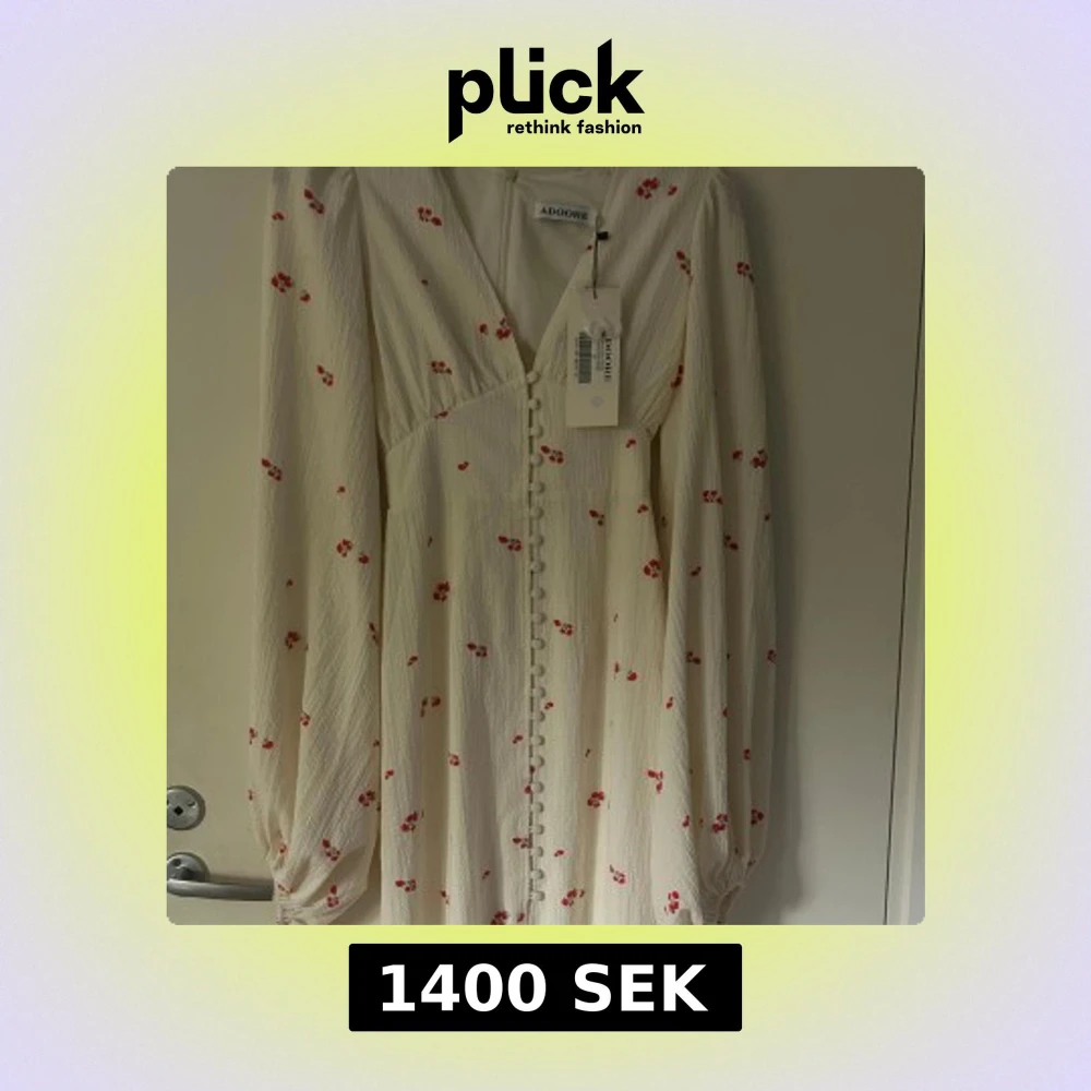 Supersöt vit Positano-klänning från Adoore med små röda blommor, helt ny strl xs/34! Nypris 1695kr! Hade en likadan i strl xxs men den passade inte o denna passade inte heller! De är den långa modellen