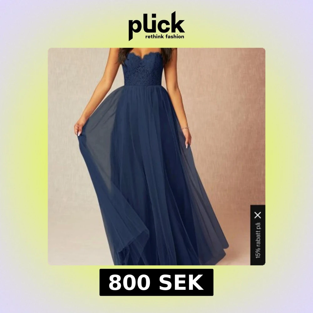 Säljer en elegant marinblå långklänning med vacker spets upptill och en flytande kjol i tyll. Klänningen är axelbandslös och perfekt för bal eller fest. Den har en romantisk och tidlös stil som passar för speciella tillfällen. Helt ny och oanvänd!
