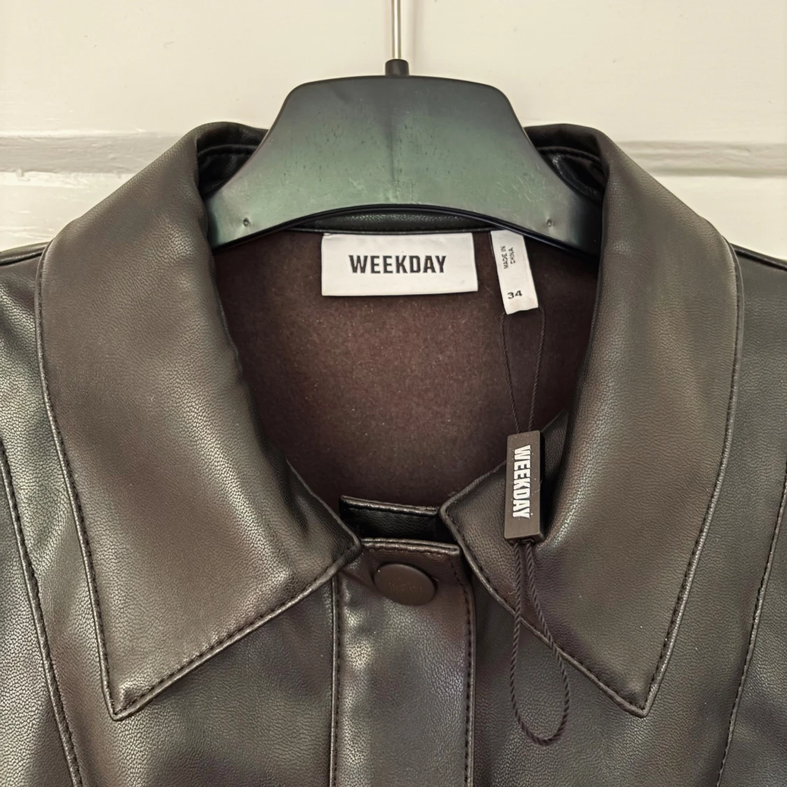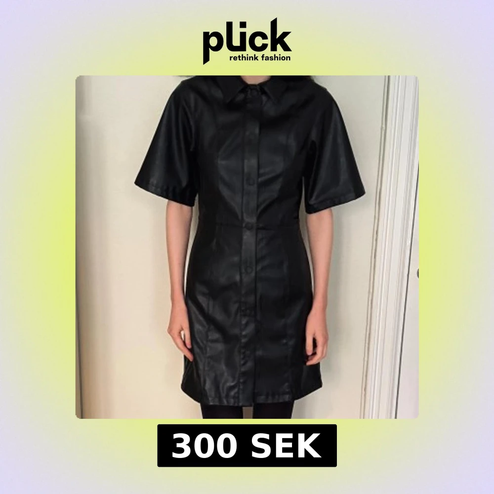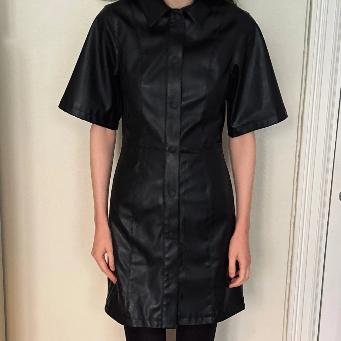 Säljer en svart skjortklänning (”Savanna Dress”) i läderimitation från Weekday. Endast använd två gånger. 🖤