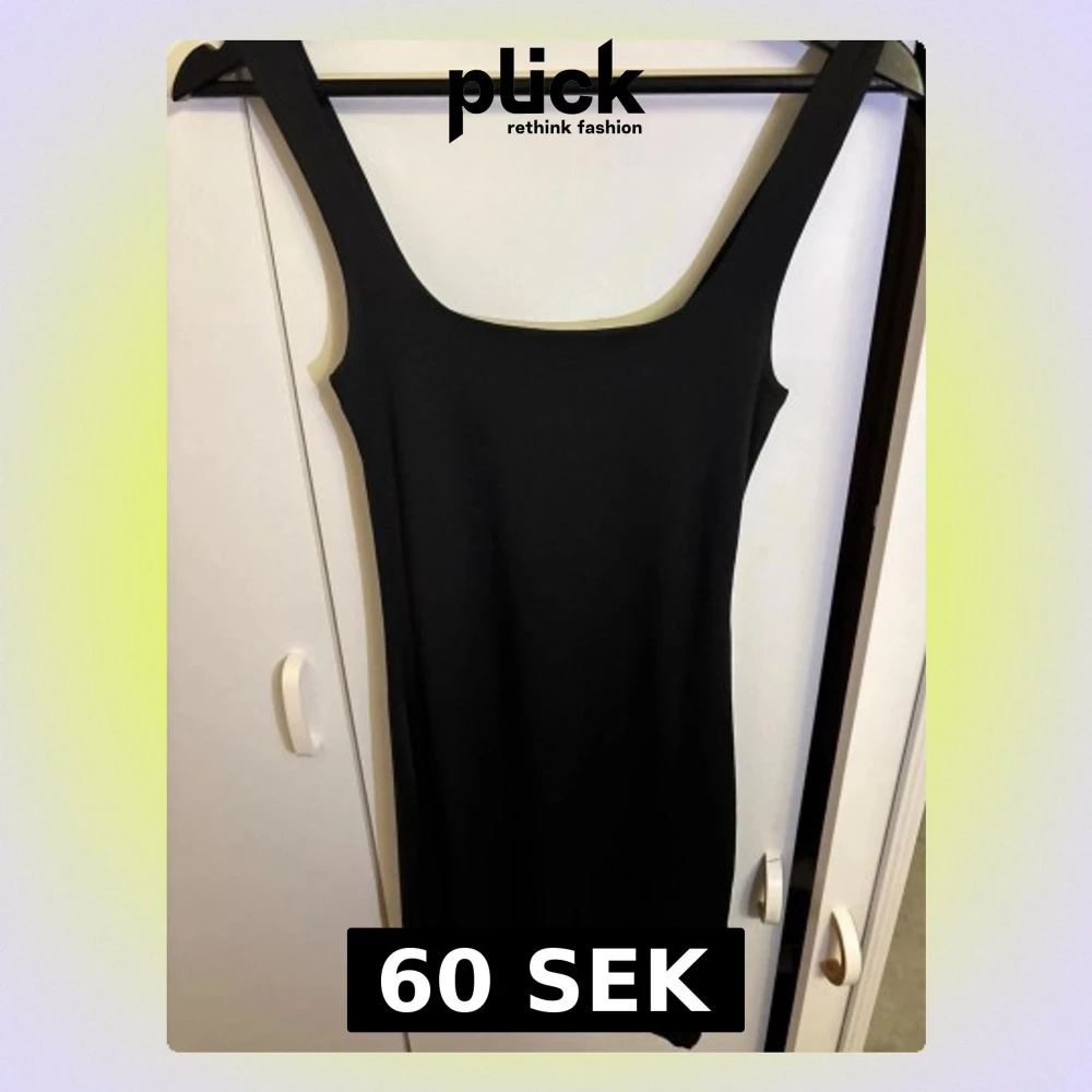 En enkel och stilren svart klänning från Amisu. Klänningen är ärmlös med breda axelband och har en rak, kroppsnära passform. Tillverkad i mjukt material och ser satin aktig ut.