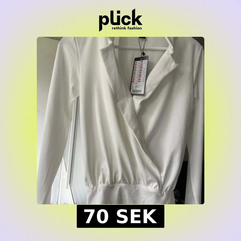 Snygg vit omlottklänning från Amisu i storlek S. Klänningen har lång ärm, markerad midja och en stilren omlottdesign vid halsen. Perfekt för dig som gillar minimalistisk och fräsch stil. Materialet känns mjukt och har en lätt glansig finish.