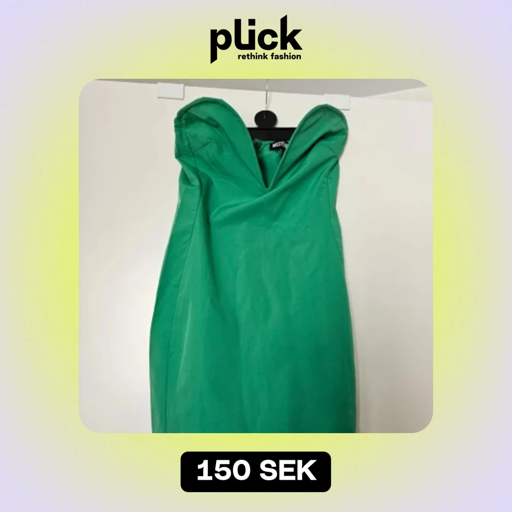 Tunn figurnära klänning med djup urringning. Använd 1 gång, passar mindre byst