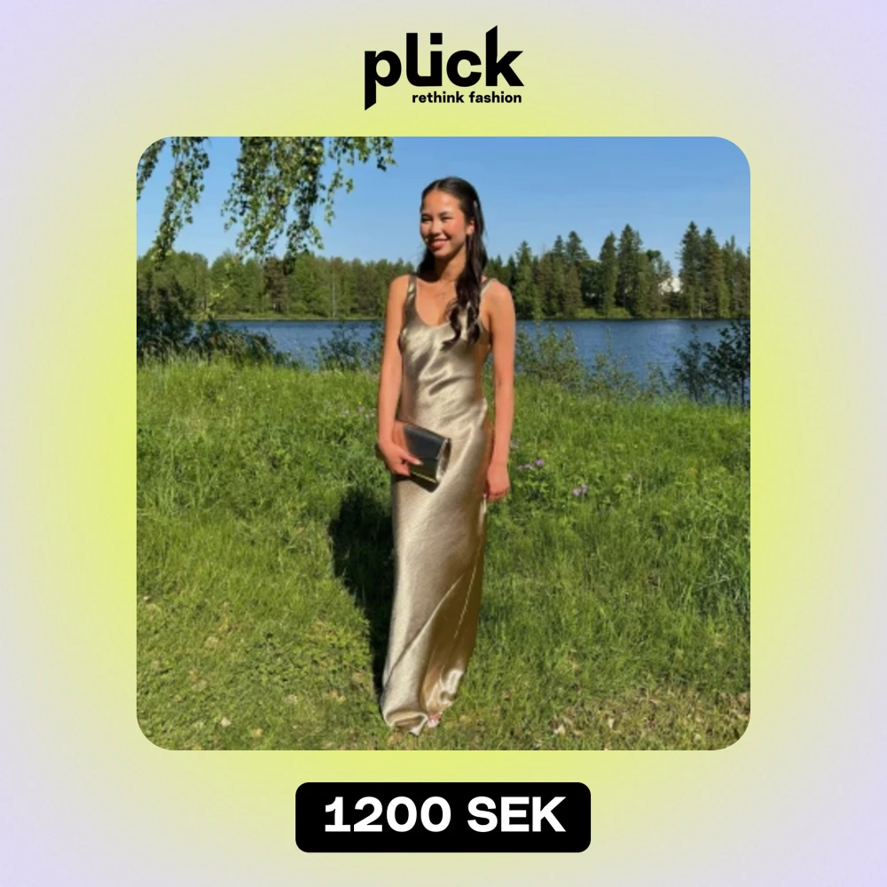 Så himla fin guldig balklänning! Köptes här på plick och jag har enbart använt den en gång. Enkel och fin i ryggen 🤩.