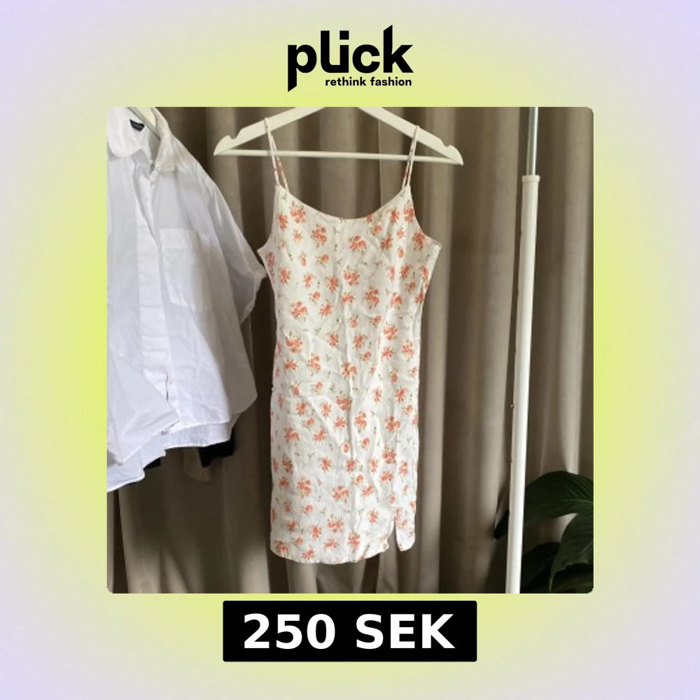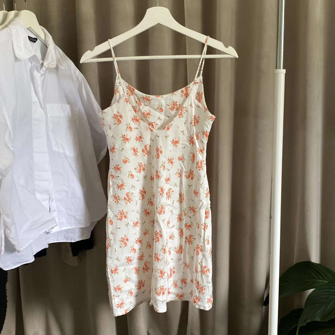 Supersöt vit kortklänning från ASOS DESIGN med tunna axelband och blommigt mönster i vitt och rosa. Klänningen har en lätt figurnära passform med mjukt och svalt material, som gör den perfekt för varma sommardagar.