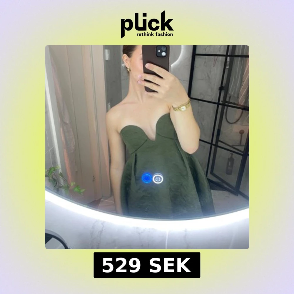 Supersöt grön axelbandslös klänning med hjärtformad urringning och lätt utställd kjol. Tjockare tyg med diskret strukturmönster ger en lyxig känsla. Perfekt för dig som vill sticka ut med en unik och trendig look.